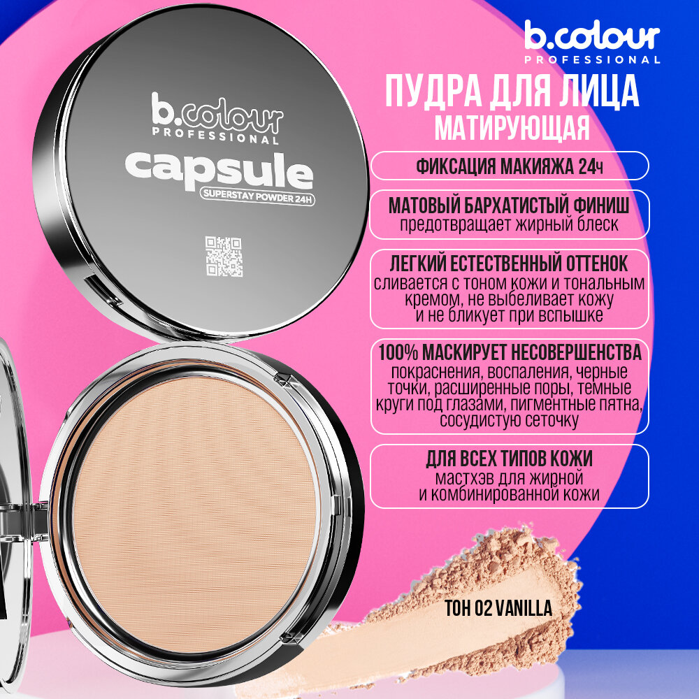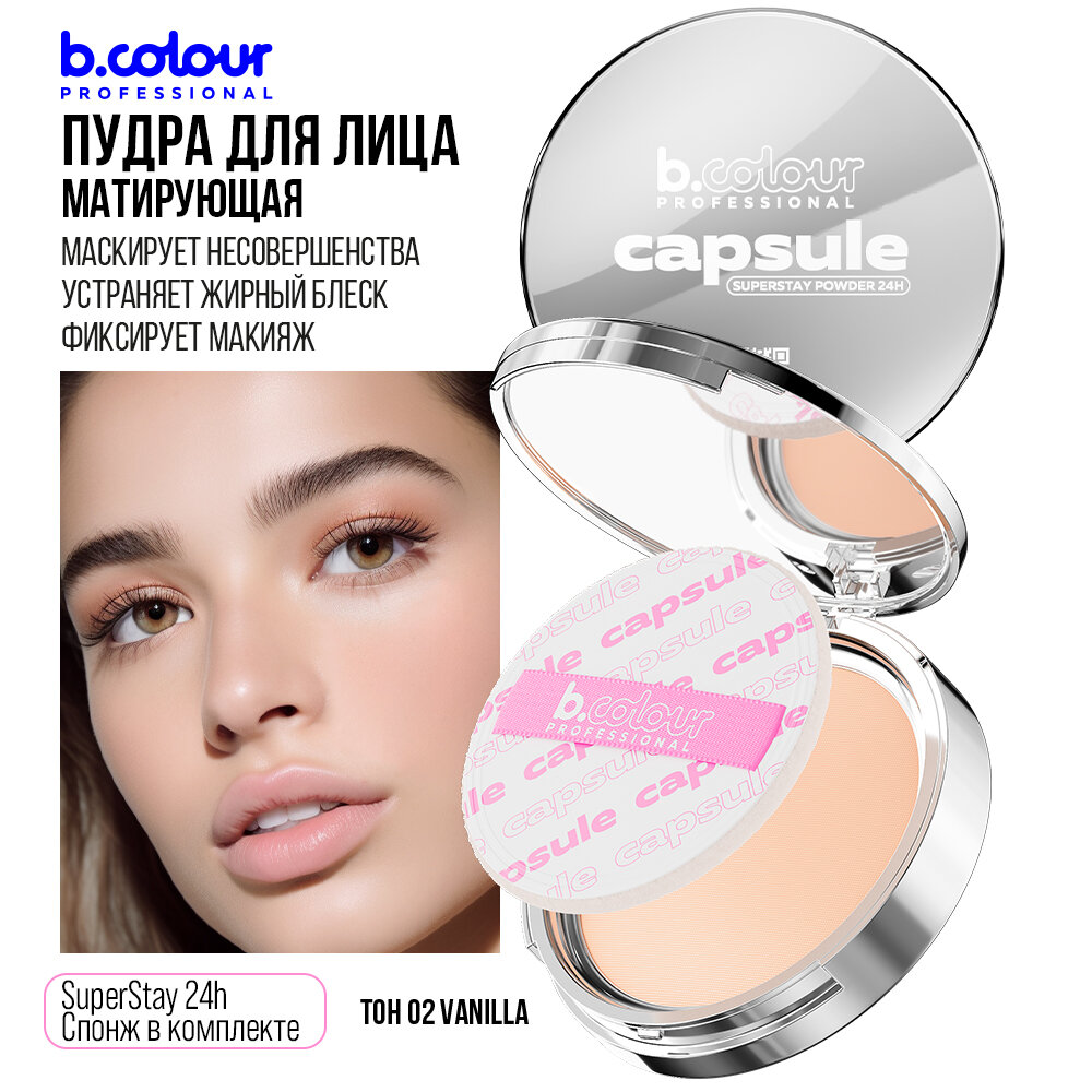 Купить B.COLOUR PROFESSIONAL Пудра для лица матирующая компактная с зеркалом светлая CAPSULE, 02 VANILLA