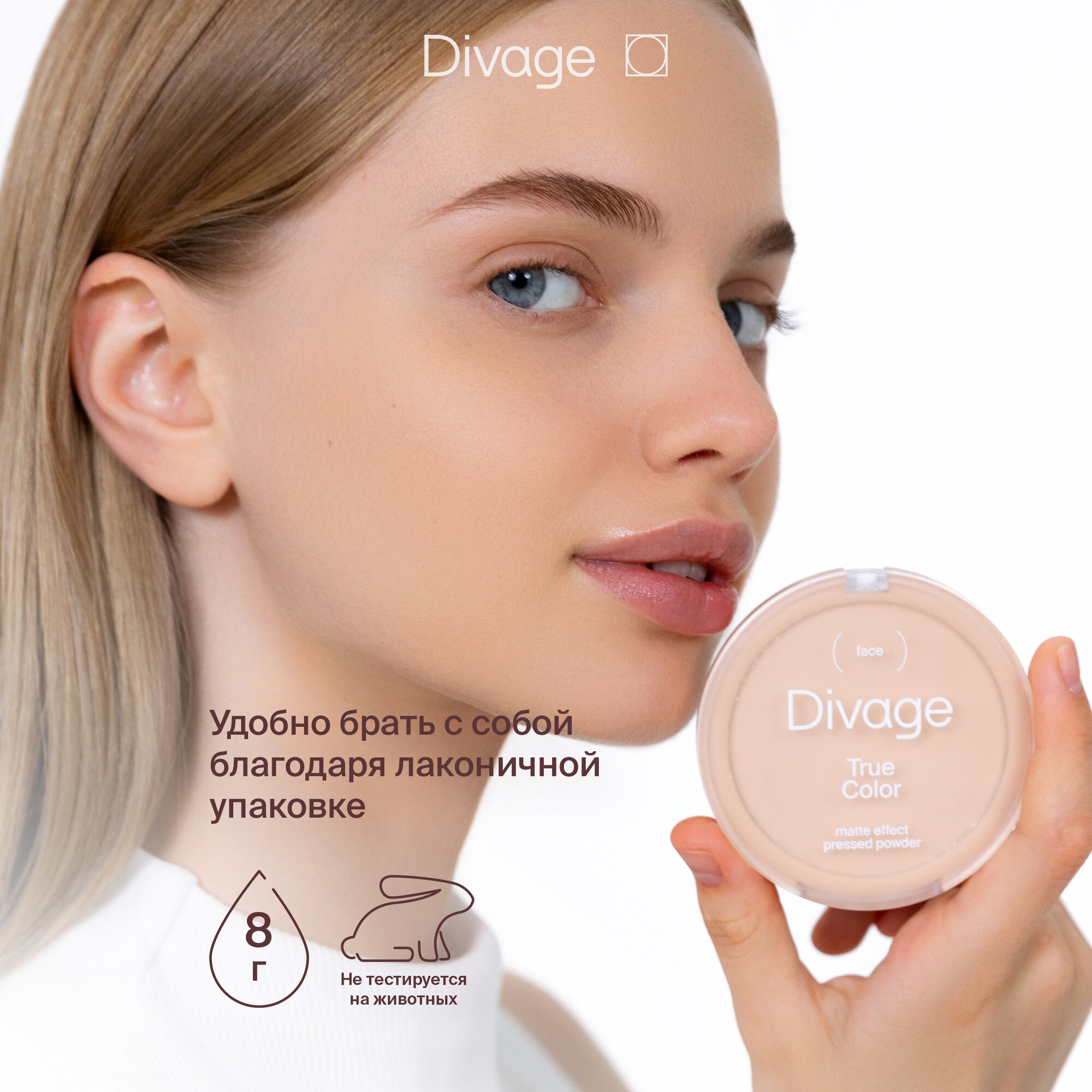 DIVAGE Пудра компактная True Color, 8 г, 02 Ivory