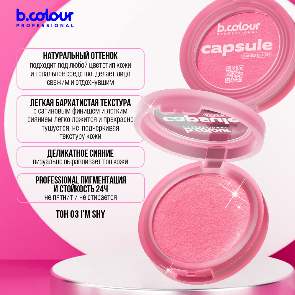 Румяна для лица сухие запеченные B.COLOUR PROFESSIONAL CAPSULE 03 I'm shy