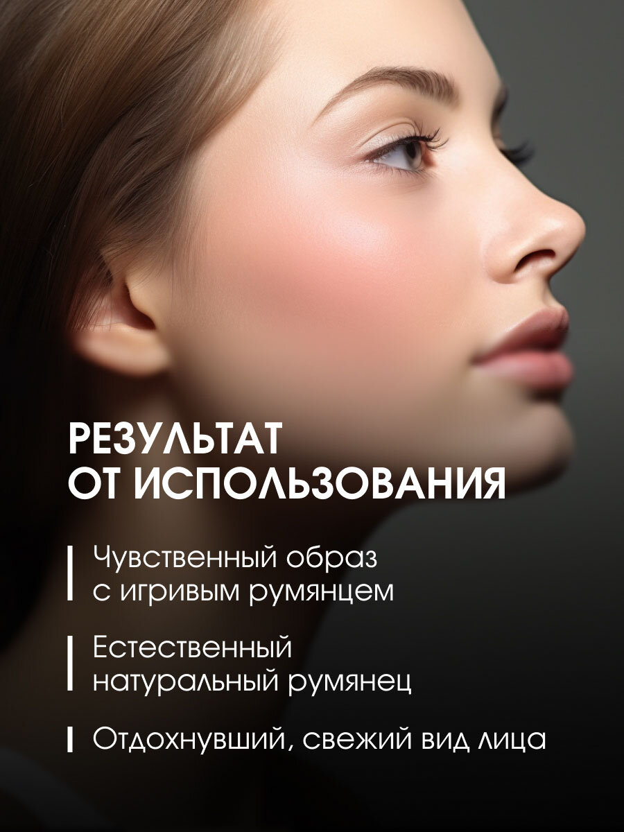 | Способ применения | Нанесите пудру тонким слоем на яблочки щек, растушуйте с помощью кисти |
