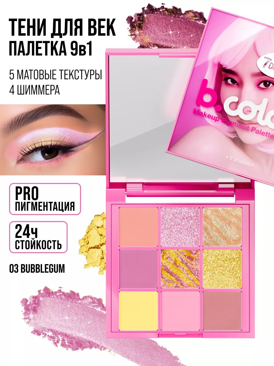 Купить 7DAYS Тени для век палетка матовые, блестящие, стойкие, B.COLOUR 03 BUBBLEGUM