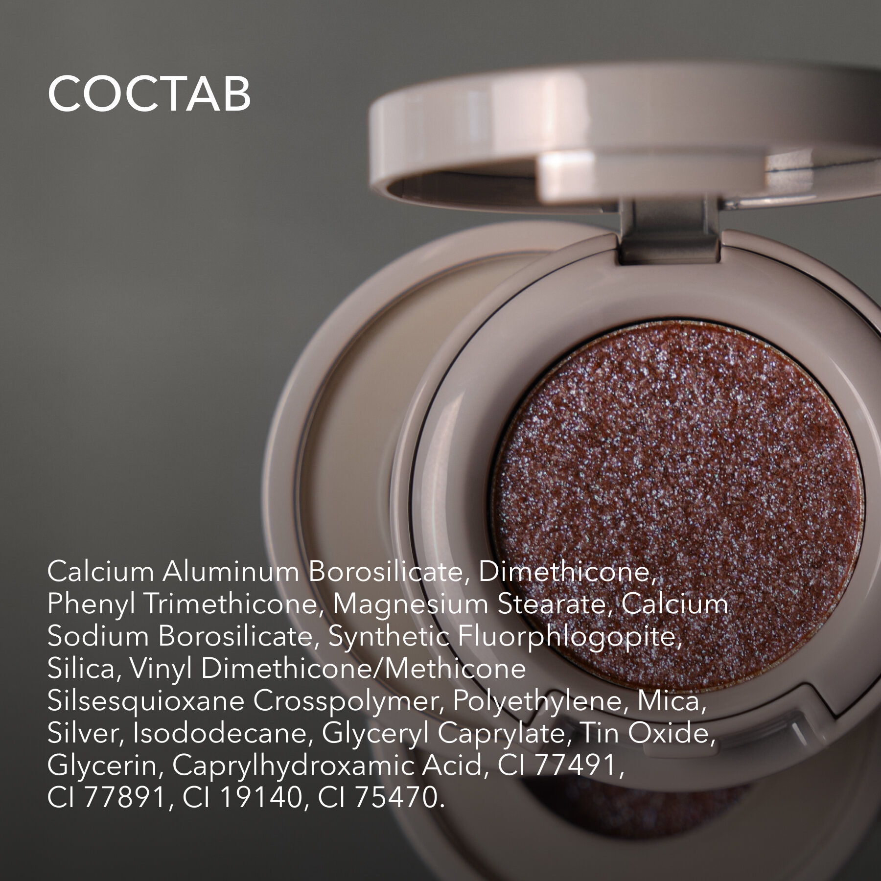 | Состав | Calcium Aluminum Borosilicate, Dimethicone, Phenyl Trimethicone, Magnesium Stearate, Calcium Sodium Borosilicate, Synthetic Fluorphlogopite, Silica, Vinyl Dimethicone/Methicone Silsesquioxane Crosspolymer, Polyethylene, Mica, Silver, Isododecane, Glyceryl Caprylate, Tin Oxide, Glycerin, Caprylhydroxamic Acid, CI 77491, CI 77891, CI 19140, CI 75470 |