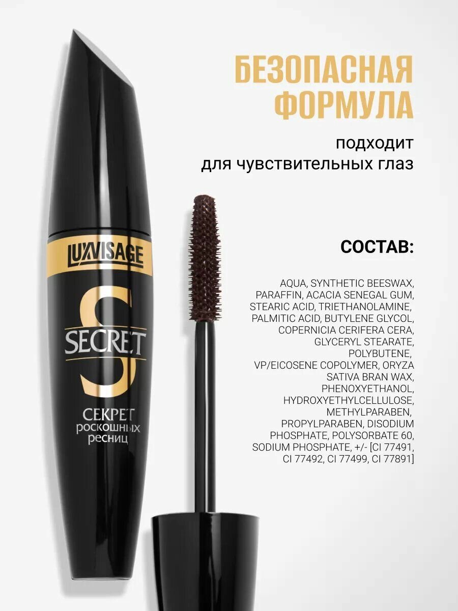 Тушь для ресниц LUXVISAGE Секрет Роскошных Ресниц, коричневая интересное: