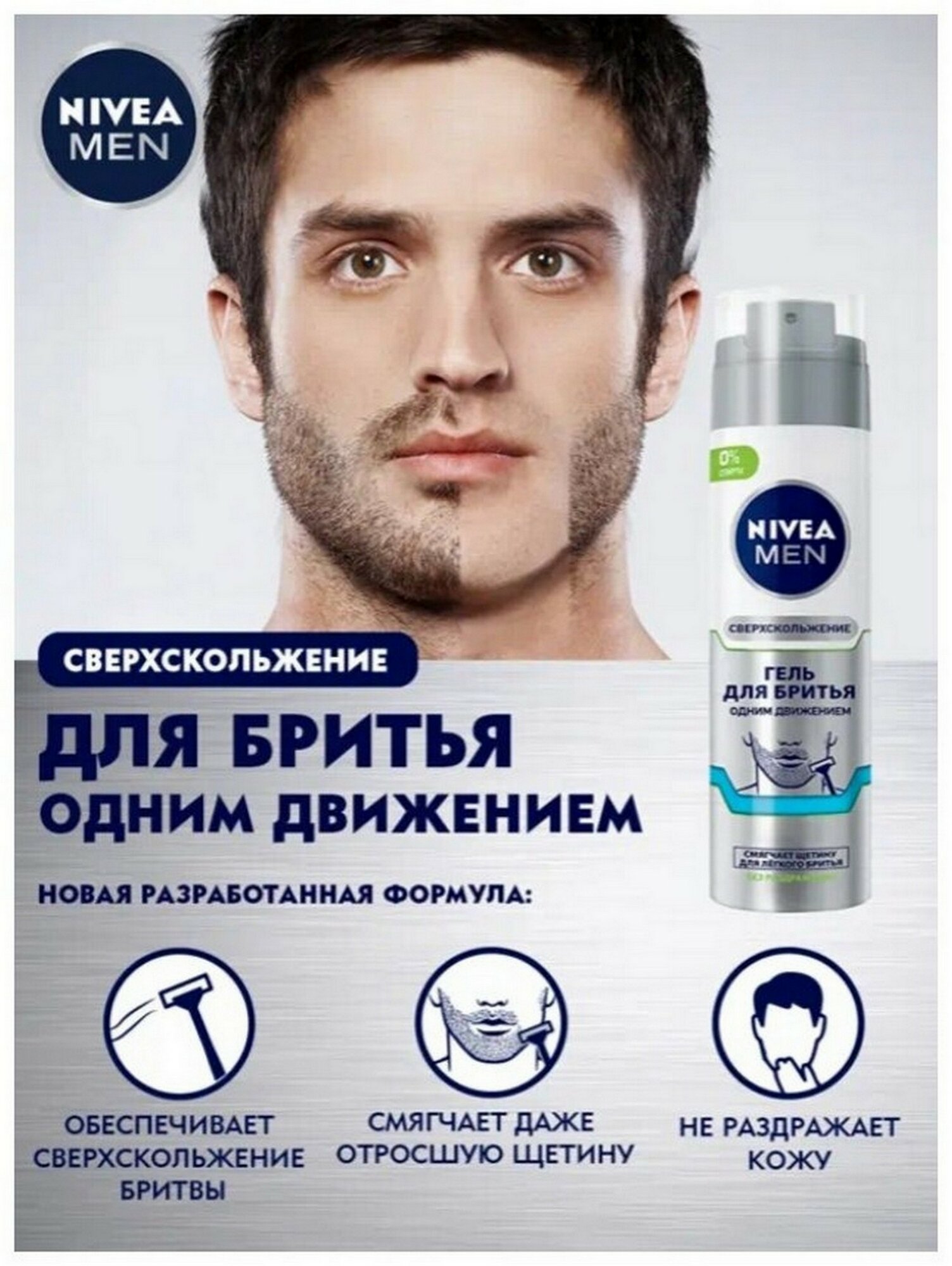 СохранитьГель для бритья одним движением NIVEA MEN "Сверхскольжение" без спирта* для чувствительной кожи, 200 мл. интересное: