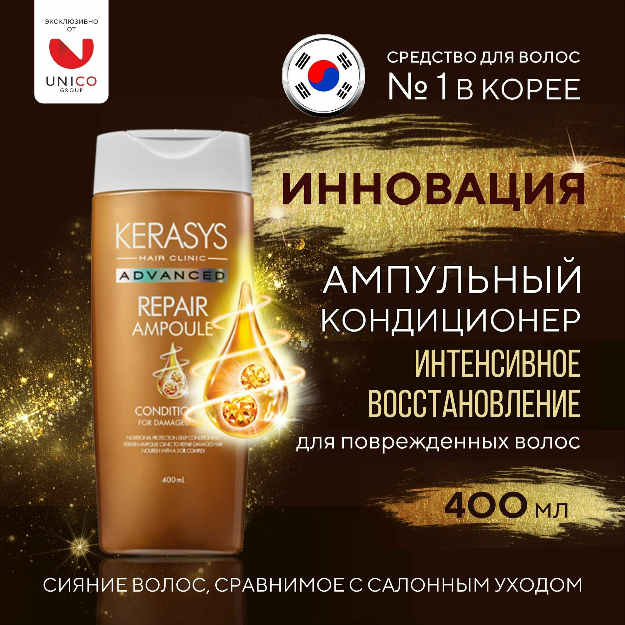 Кондиционер KERASYS Ампульный Advanced "Интенсивное восстановление" с кератиновыми ампулами, 400 мл