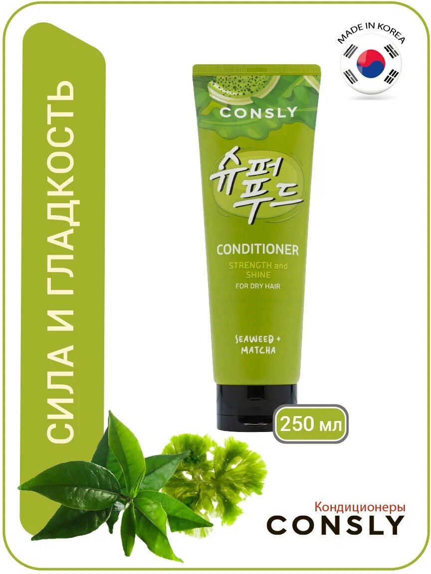 Кондиционер с экстрактами водорослей и зеленого чая Матча для силы и блеска волос, для сухих волос, 250 мл, Consly