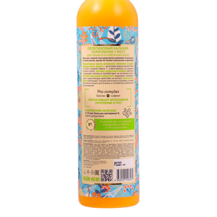 Бальзам облепиховый Natura Sibericа, для тонких и ослабленых волос, 400 мл