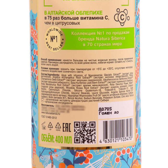 Облепиховый бальзам Natura Siberica Oblepikha Siberica для нормальных и жирных волос, 400 мл