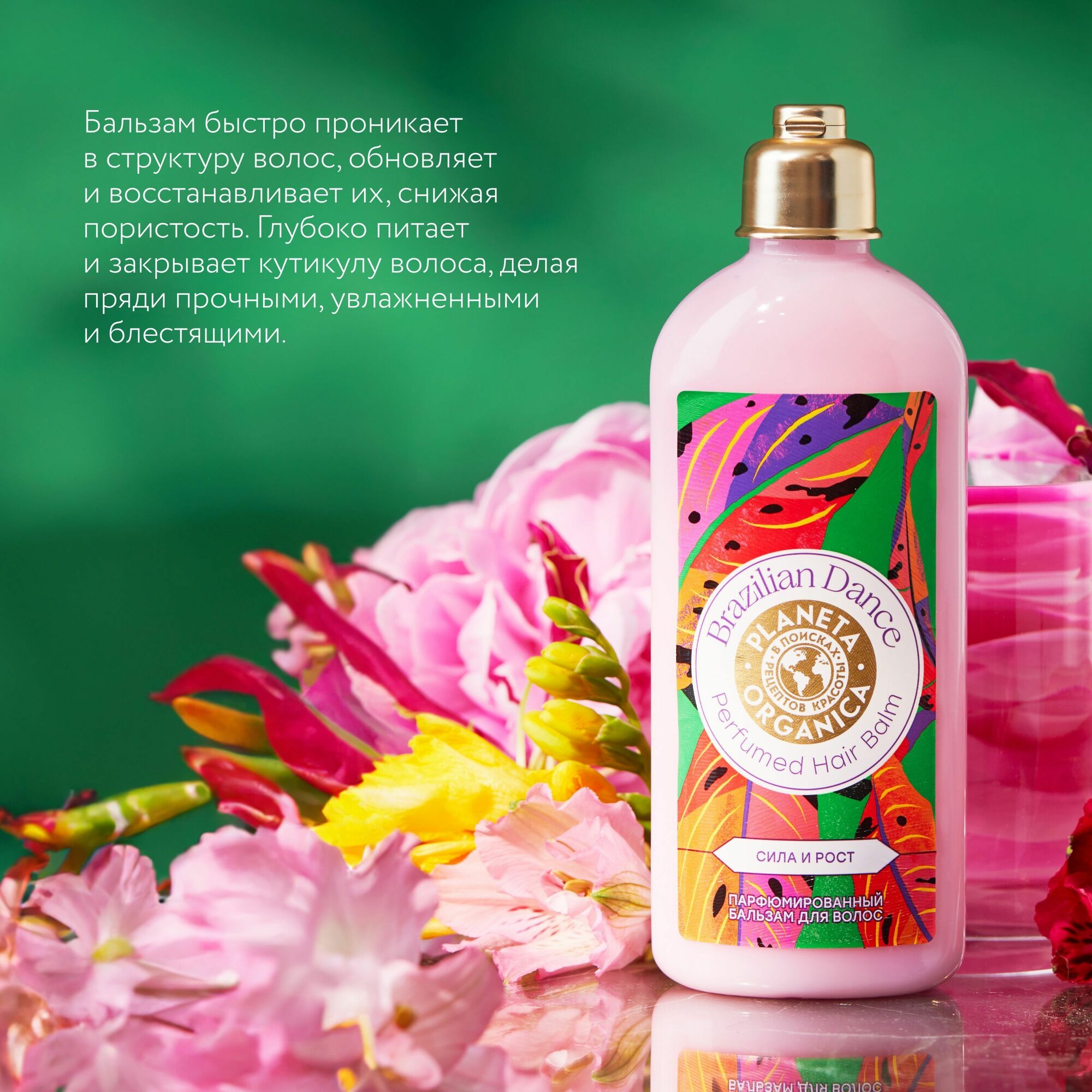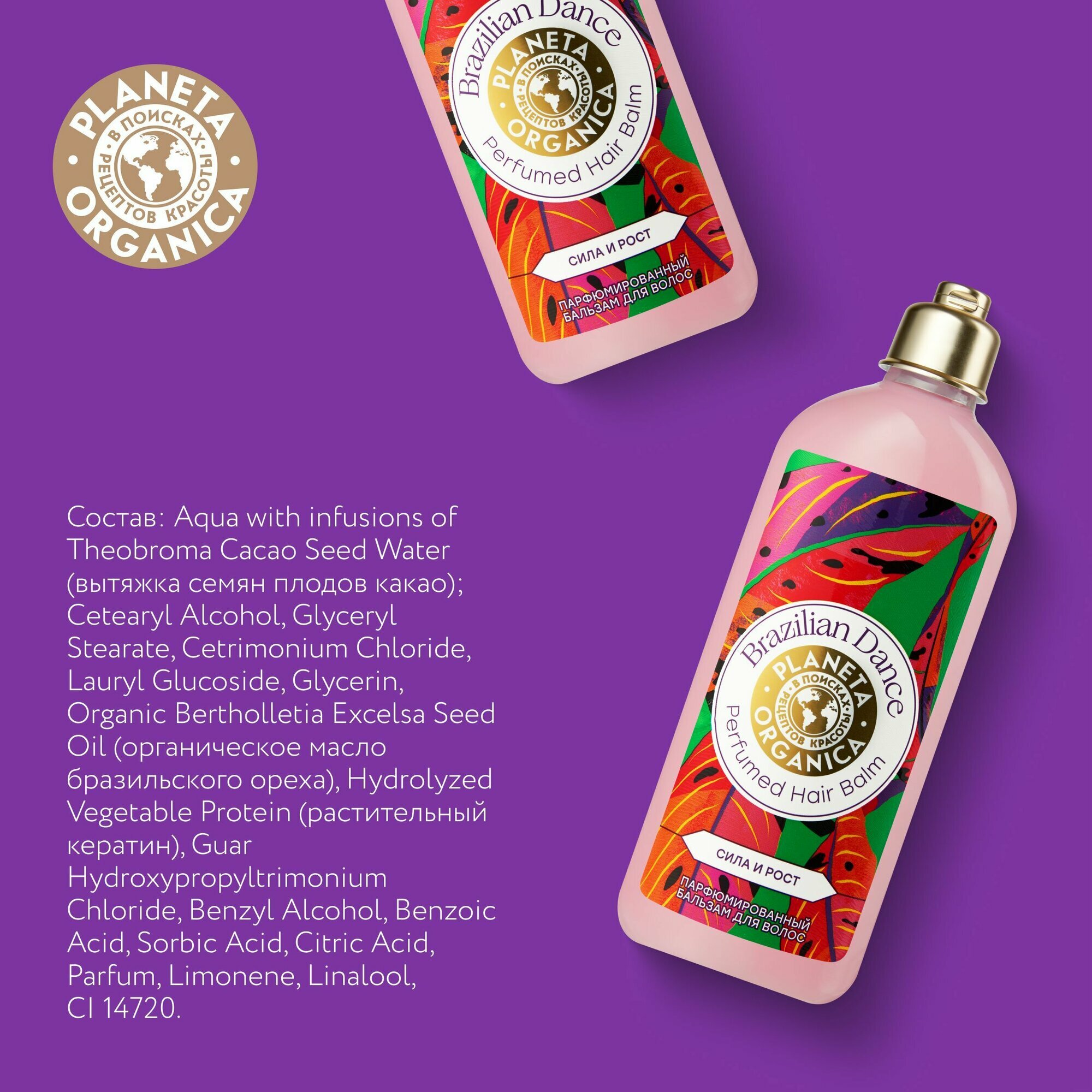 Купить Planeta Organica Brazilian Dance Сила и рост Бальзам для волос парфюмированный укрепляющий, увлажняющий кондиционер ополаскиватель с кератином 280 мл