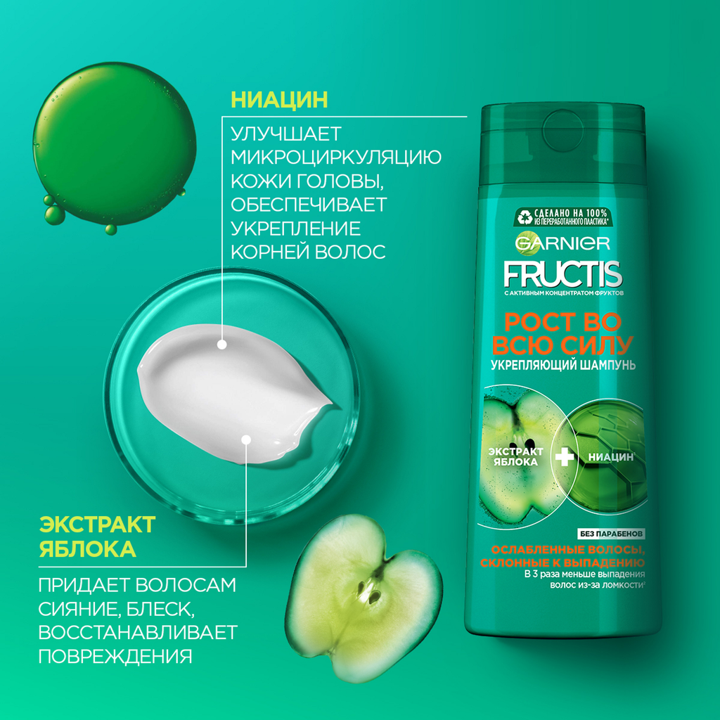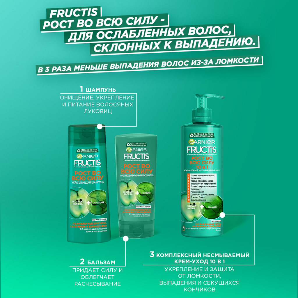 GARNIER Шампунь для ослабленных волос, склонных к выпадению Fructis Рост Во Всю Силу укрепляющий, 400 мл - 1 шт