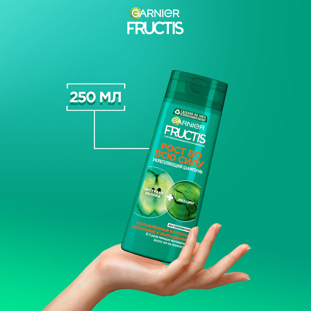 Garnier Fructis Укрепляющий шампунь Фруктис Рост во всю Силу, для ослабленных волос, склонных к выпадению, 250 мл