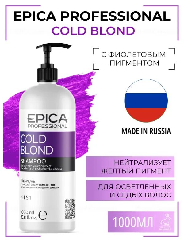 Купить Шампунь EPICA Cold Blond с фиолетовым пигментом с маслом макадамии и экстрактом ромашки 1000мл