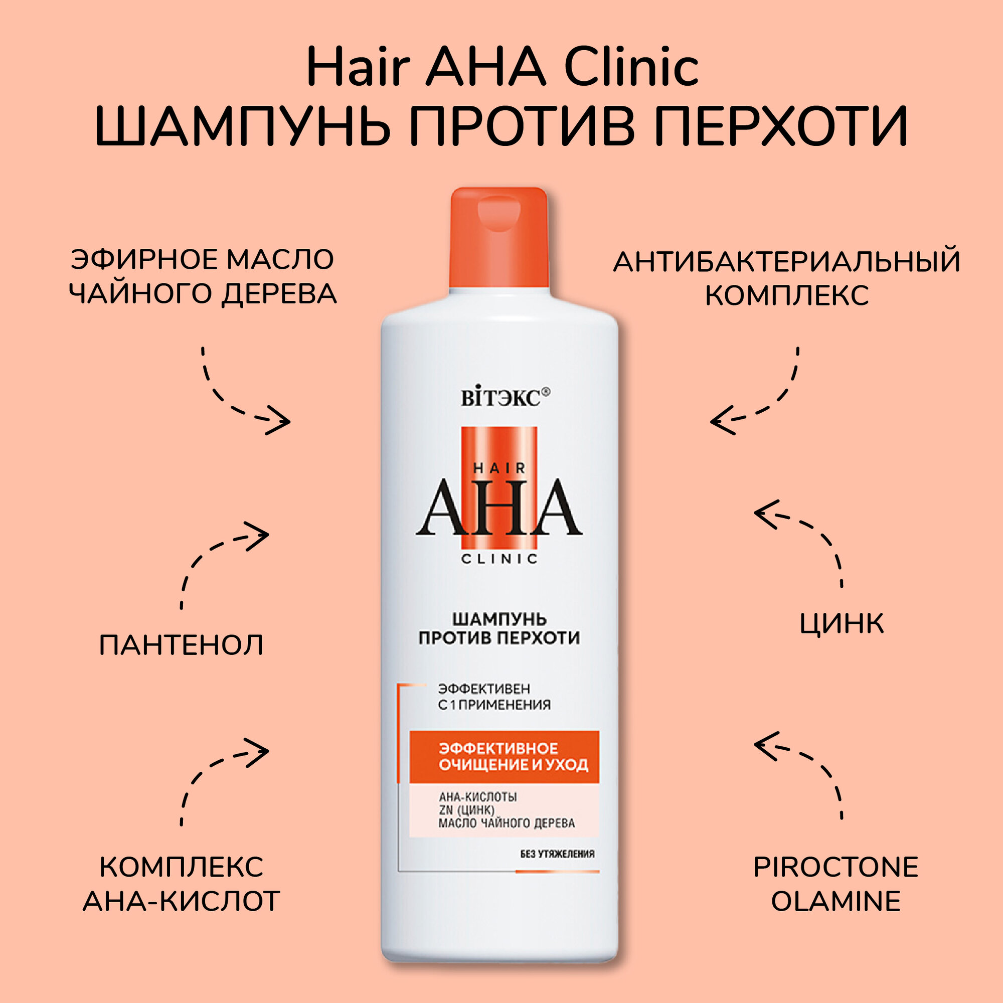 Купить Витэкс Шампунь против перхоти Hair AHA Clinic "Эффективное очищение и уход", 450 мл