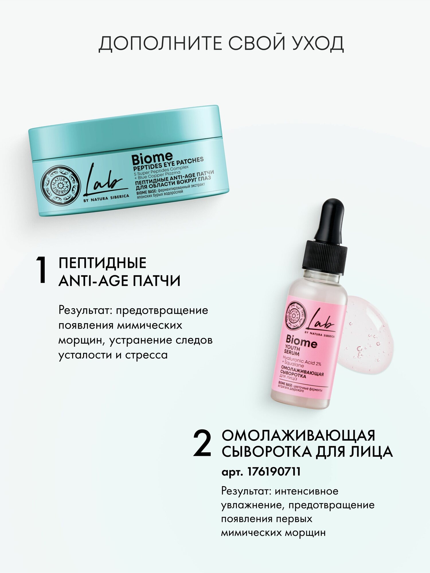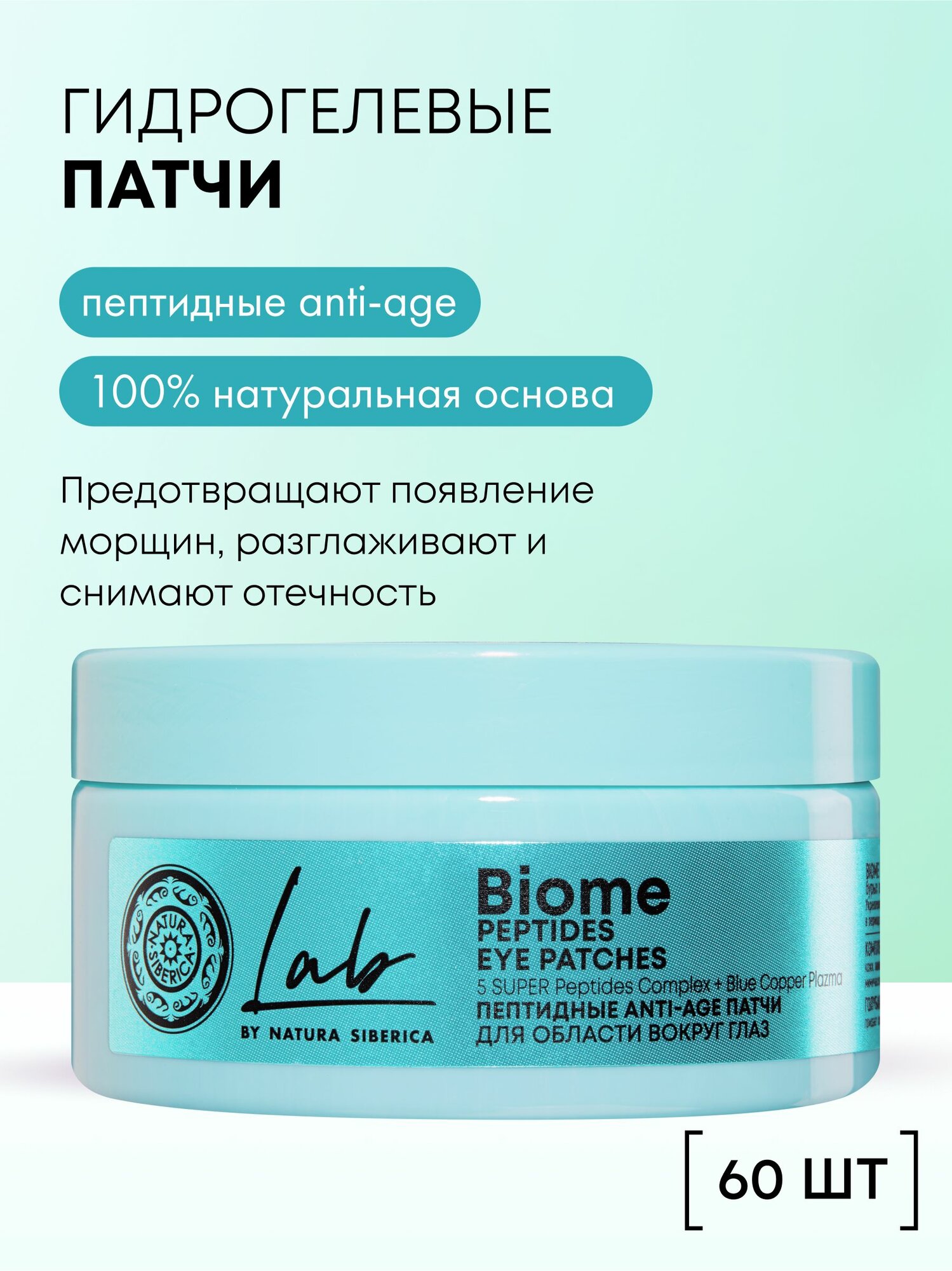 Купить Natura Siberica Lab Biome Гидрогелевые патчи для глаз от морщин, отеков и темных кругов антивозрастные омолаживающие увлажняющие с пептидами 60 шт