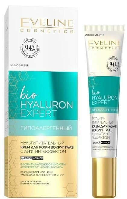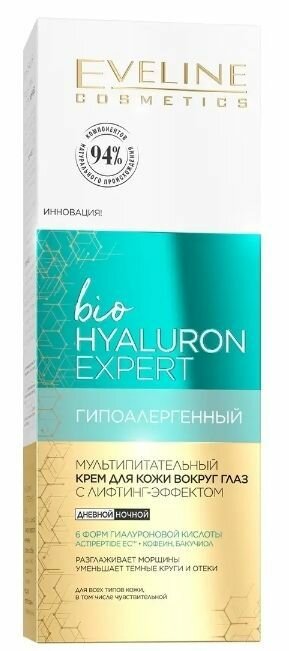 EVELINE Крем для кожи вокруг глаз BIO HYALURON EXPERT мультипитательный с лифтинг эффектом 20 мл
