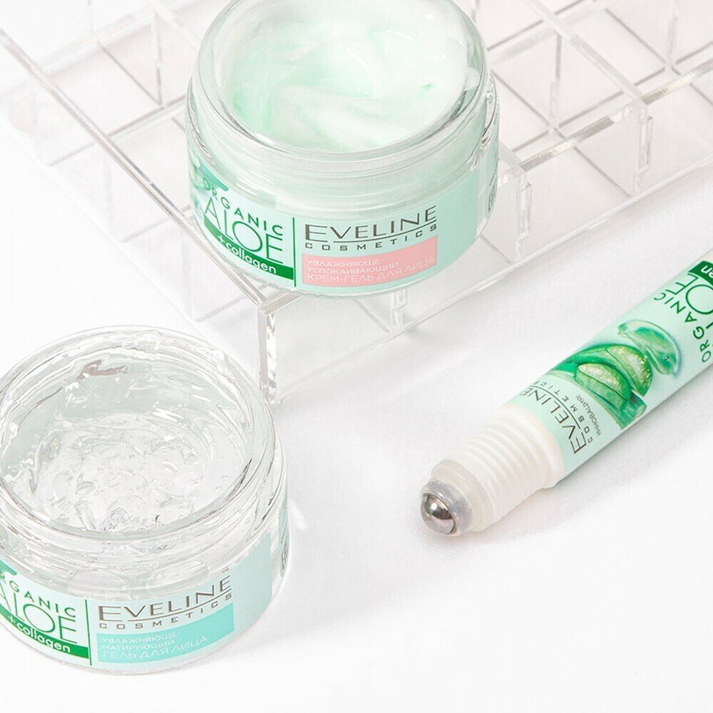 Гель-лифтинг для контура глаз EVELINE ORGANIC Алое + Коллаген роликовый (увлажняющий) 15 мл