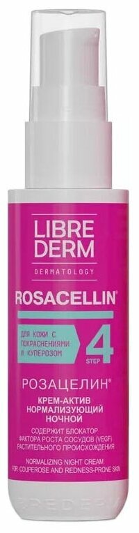 Крем-актив ночной нормализующий для кожи с куперозом и покраснениями Розацелин, 50 мл, Librederm интересное: