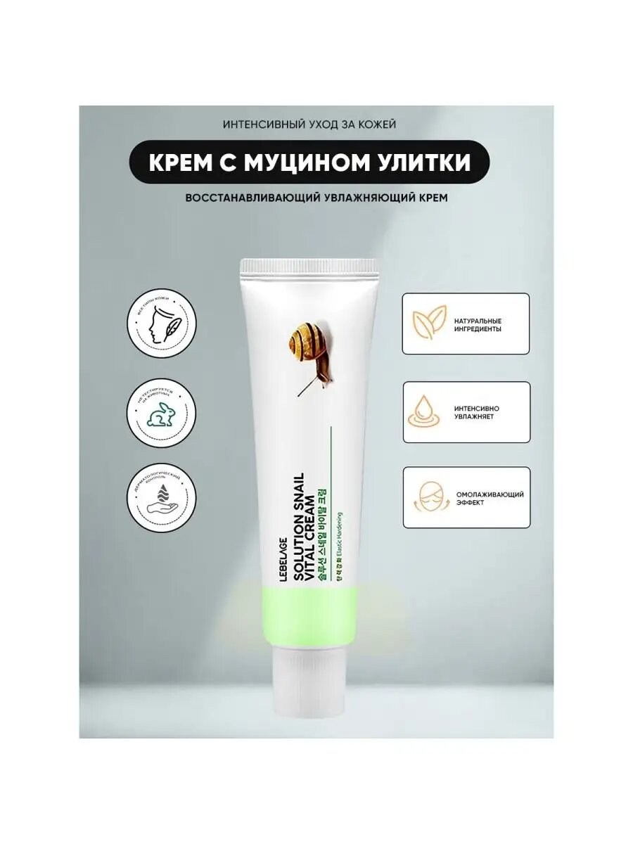 LEBELAGE Восстанавливающий крем для ухода за кожей лица, шеи и зоны декольте с муцином улитки и пептидами, корейская косметика. 50мл