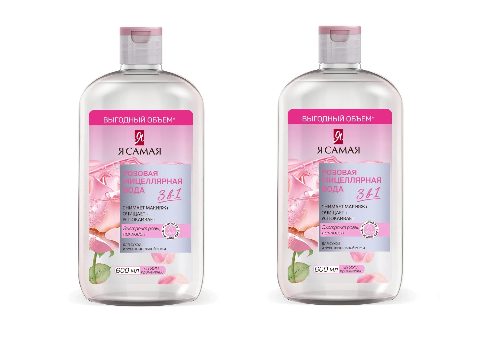 Я Самая Мицеллярная вода Розовая, для сухой и чувствительной кожи, 600 мл, 3 шт