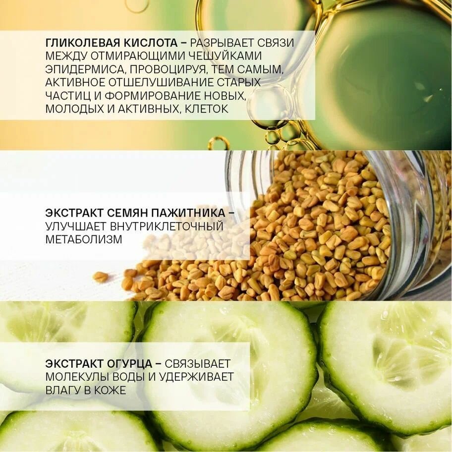 | Активный ингредиент | AHA-кислоты / гликолевая кислота / фруктовые кислоты |