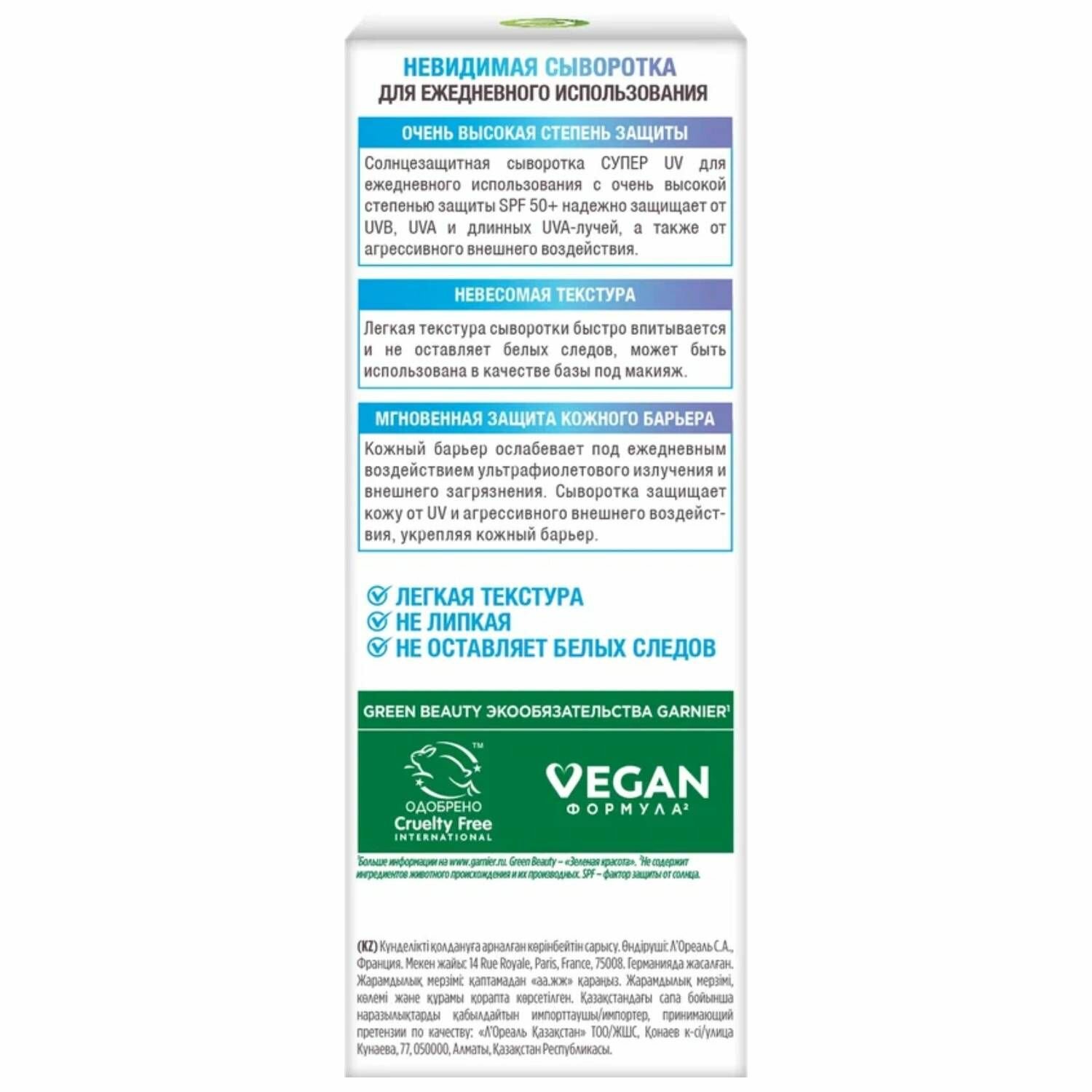 Garnier Амбре Солер солнцезащитная сыворотка для лица "Невидимая Защита" СПФ 50, 30 мл