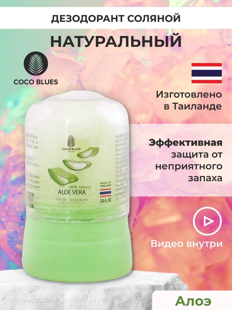 Купить COCO BLUES Тайский натуральный дезодорант кристалл соляной против запаха пота для женщин и мужчин 50 гр, экстракт Алоэ