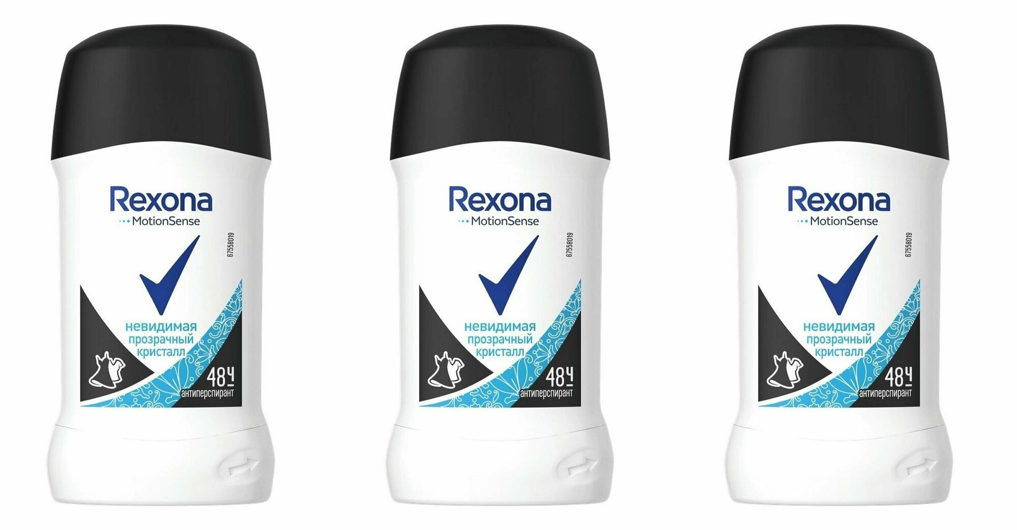 Купить Rexona Антиперспирант стик Невидимая. Прозрачный кристалл, женский, 40 мл, 3 шт
