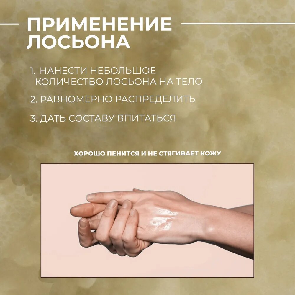 | Масла и экстракты | аргановое масло / кокосовое масло / масло авокадо / масло камелии / масло подсолнечника / оливковое масло / экстракт алоэ / экстракт жасмина / экстракт зеленого чая |