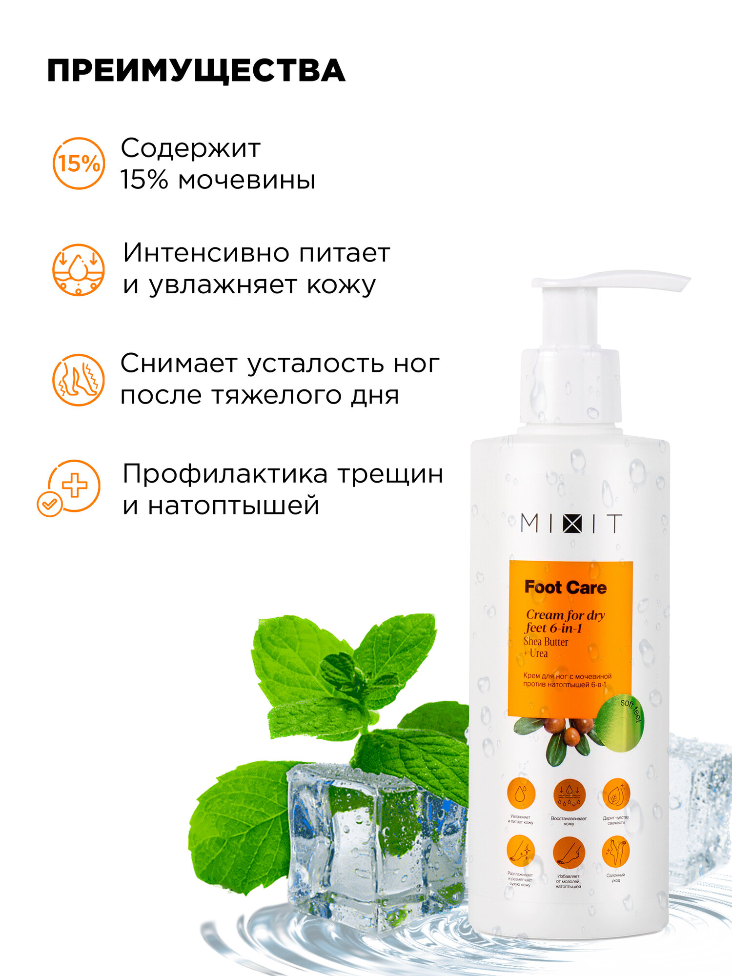 Купить MIXIT Крем для ног и пяток от трещин и натоптышей увлажняющий с мочевиной FOOT CARE CREAM, 250 мл