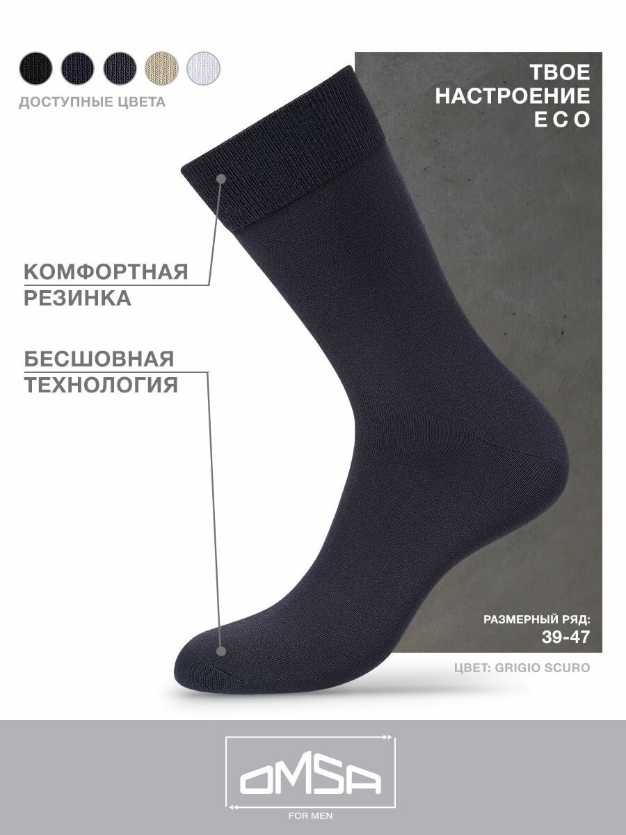 Носки мужские OMSA ECO 401, высокие, комплект 5 пар в упаковке "Крафт", Цвет Grigio Scuro, Размер 42-44