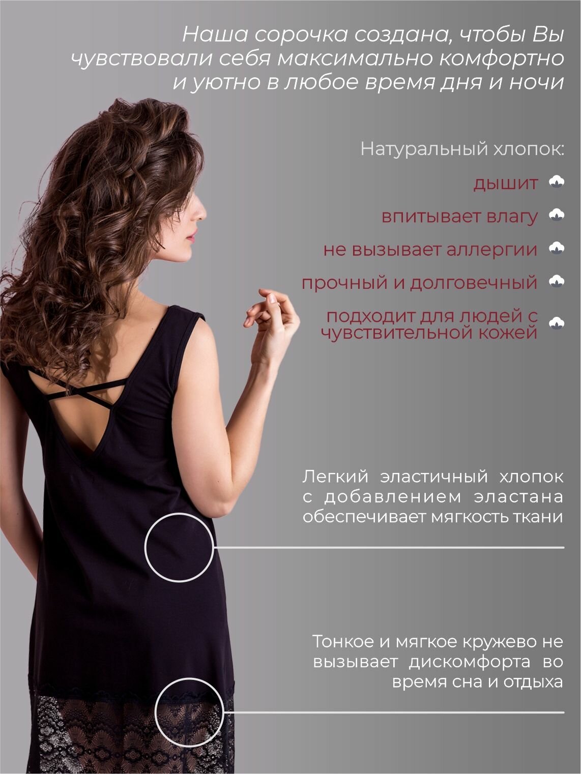 Ночная сорочка кружевная платье - ночнушка хлопок