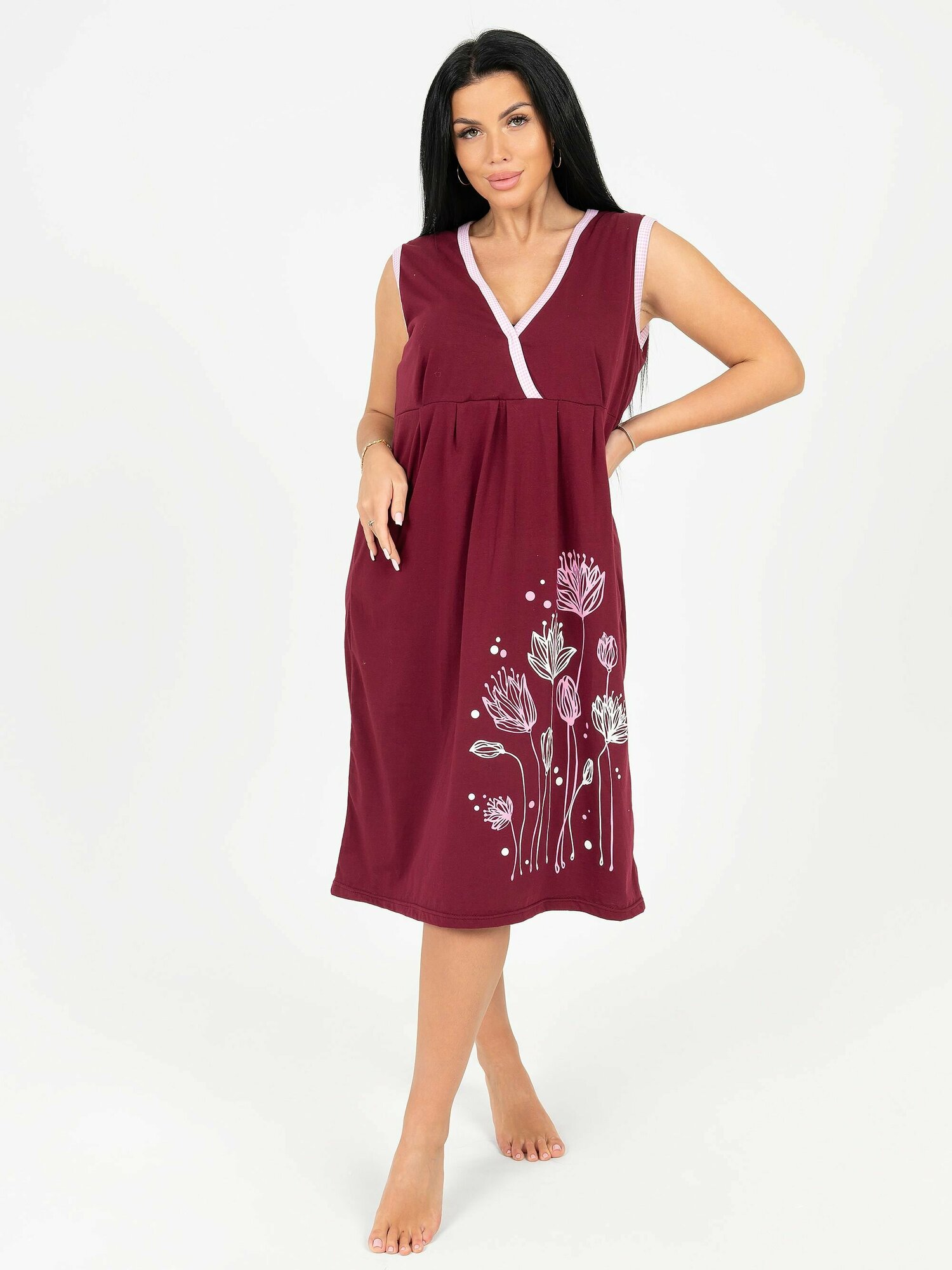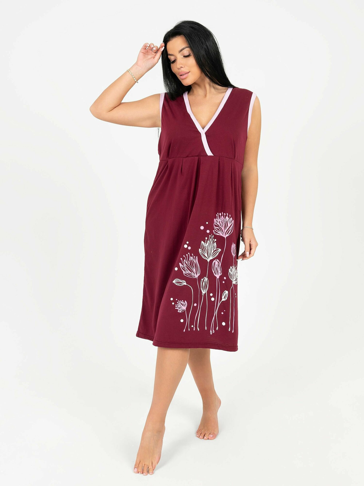 Сорочка ночная хлопковая удлиненная бордовый 46 размер
