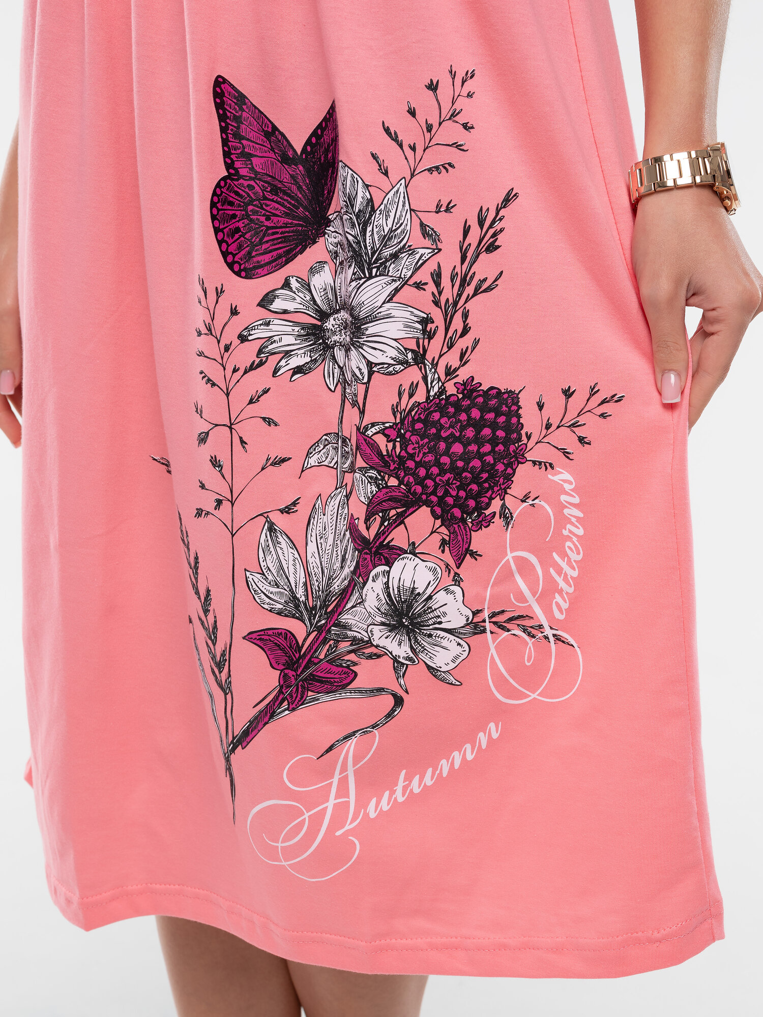 Женская платье-туника, с рукавом, вискоза, с карманами, цвет персиковый, бежевый. Размер 46