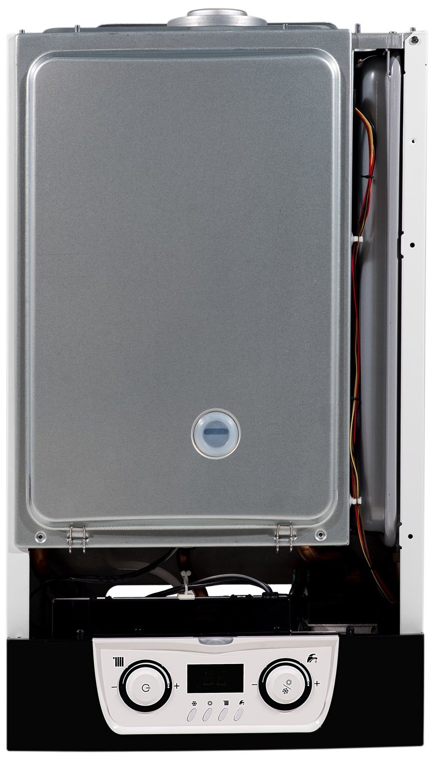 | Особенности | воздухоотводчик, встроенный расширительный бак, встроенный циркуляционный насос, манометр, предохранительный клапан, разъем для подключения внешнего управления, термометр |