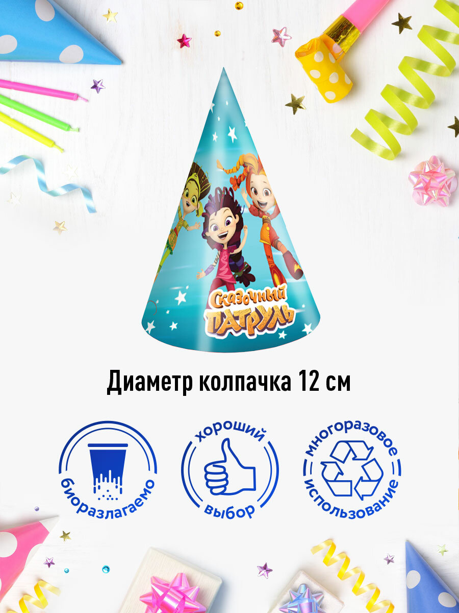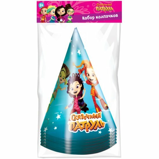 Праздничные колпаки картонные Riota Сказочный Патруль, фиолетовый, 6 шт.