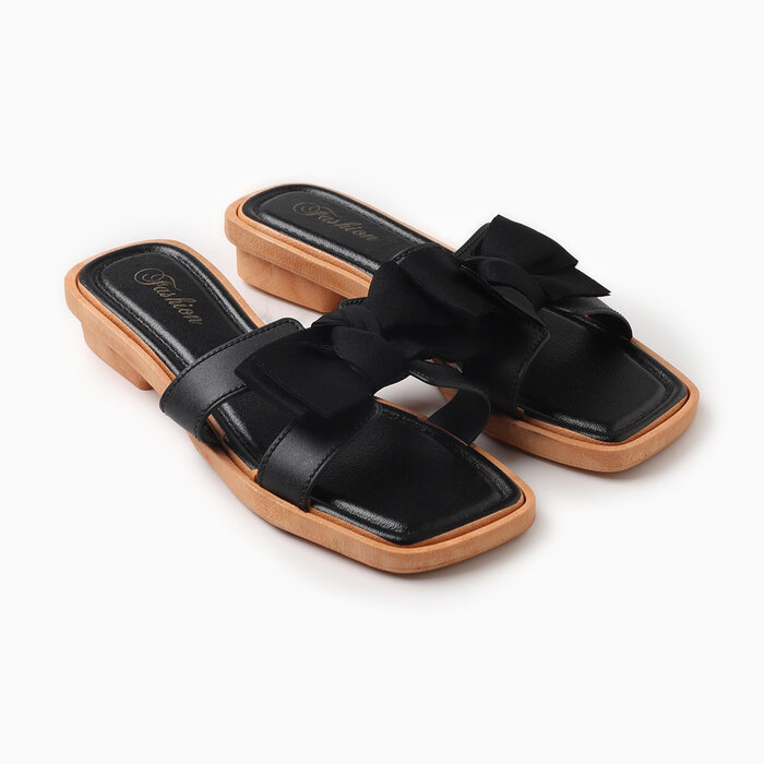 Тапочки женские домашние открытые с бантом размер 38-39 цвет черный