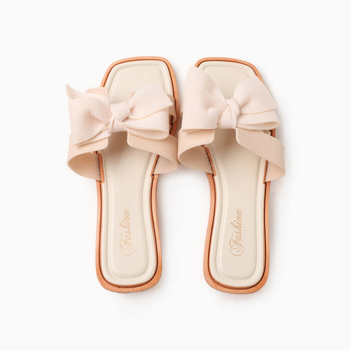 Тапочки женские домашние открытые с бантом размер 36-37 цвет молочный