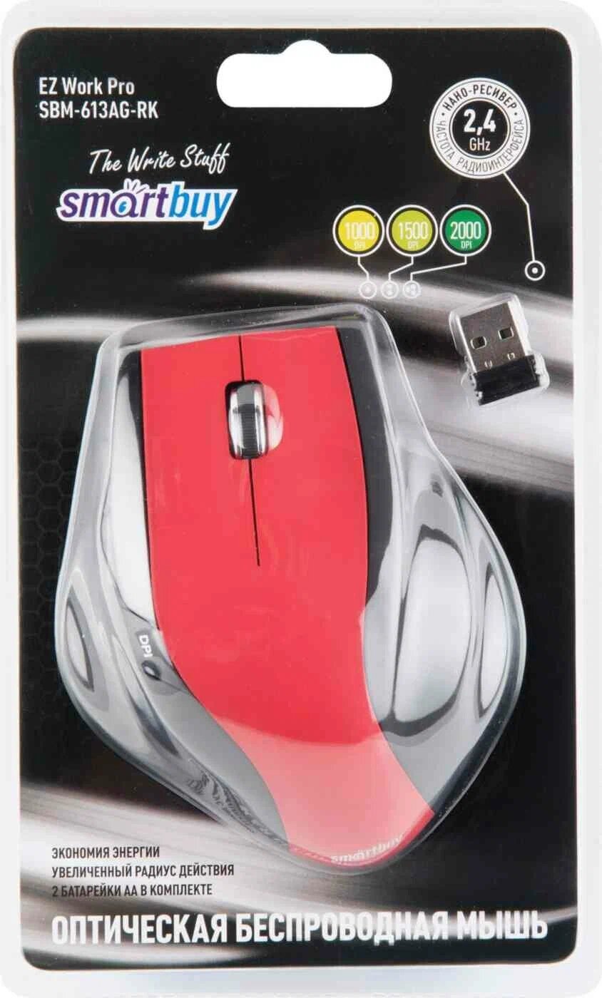 Мышь Smartbuy 613AG, беспроводная, оптическая, 2000 dpi, 2xAA , USB, красная