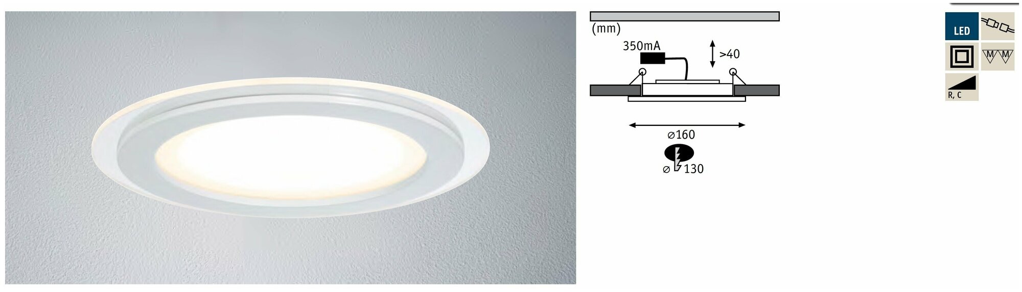 Светильник встраиваемый Paulmann DecoDot 7.5Вт 600Лм 2700К LED IP23 230В Прозрачный/Белый D160мм 92733 интересное: