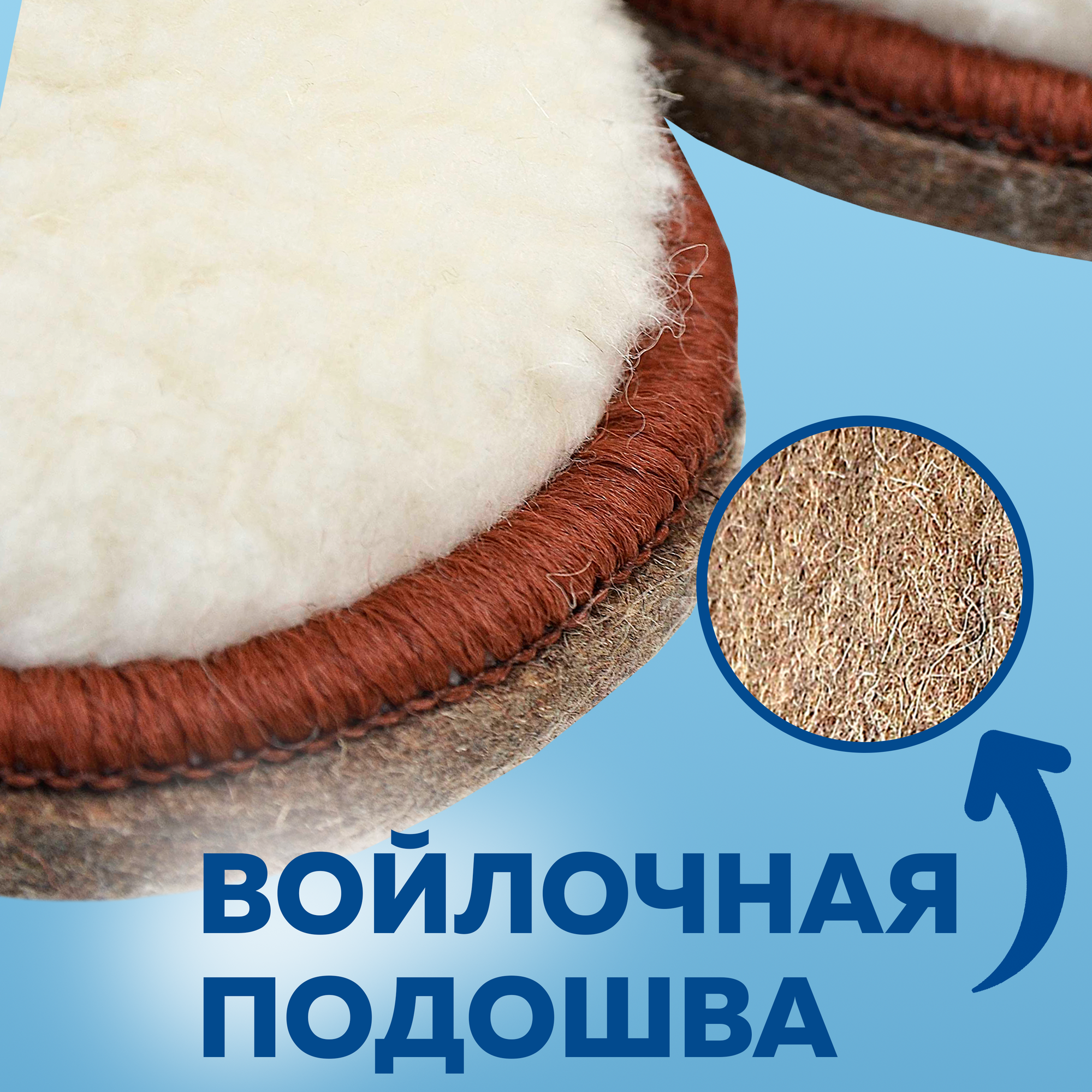 | Дополнительная информация | Состав: верх 50% натуральная шерсть, 50% искусственный мех; подошва войлок: 100% натуральная шерсть |