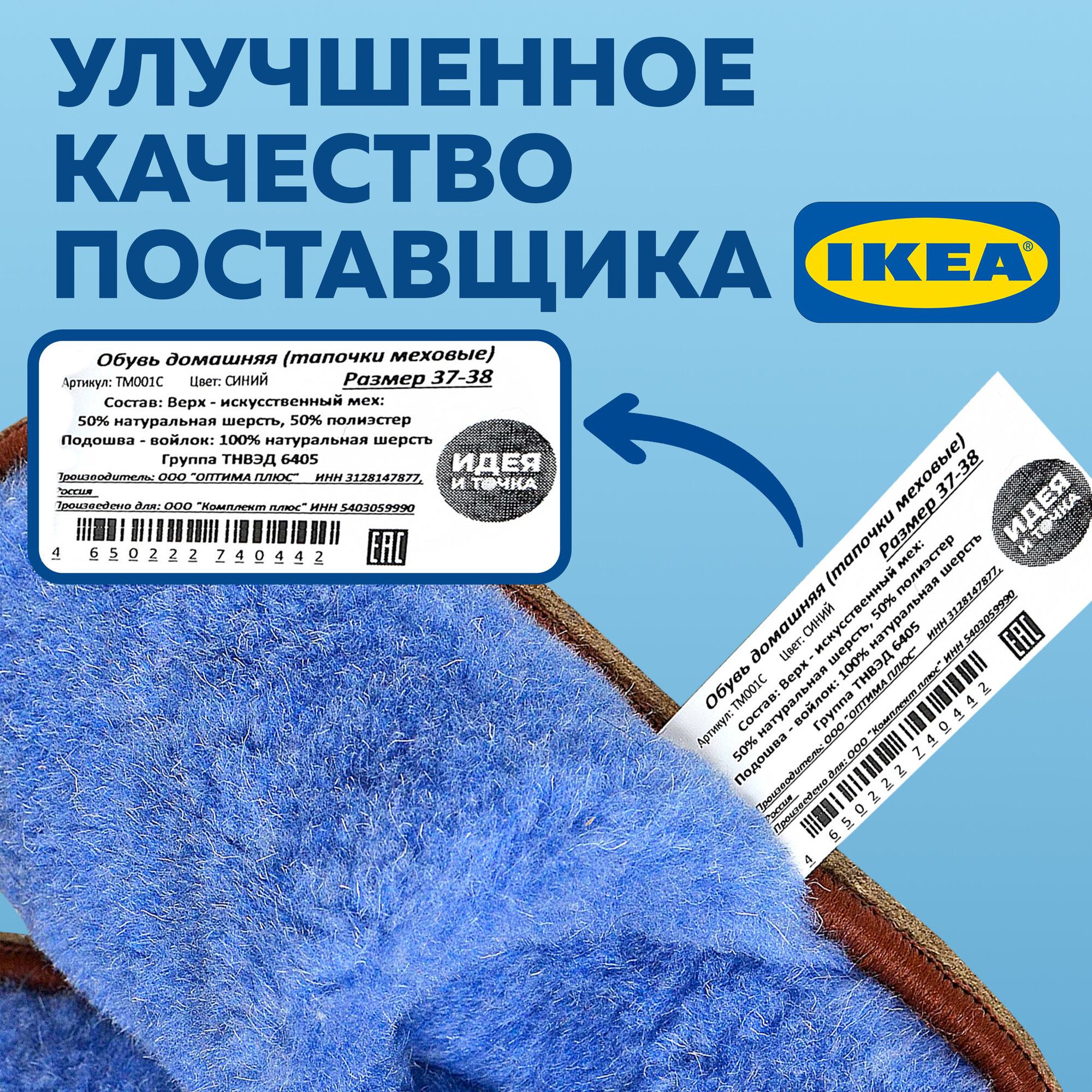 Тапочки меховые LANEUS Идея и точка (аналог икеа феген), тапочки из шерсти, размер 37-38, синий