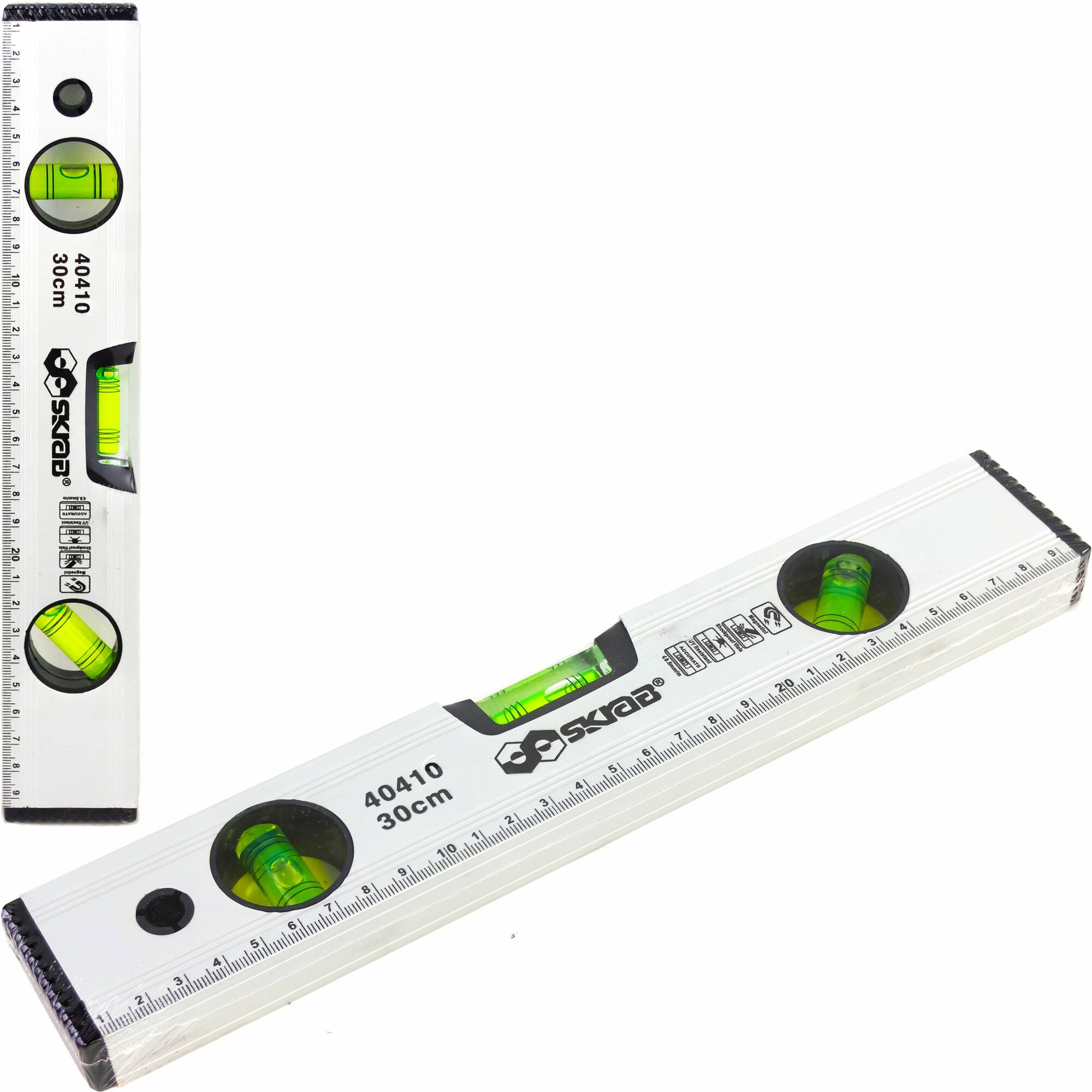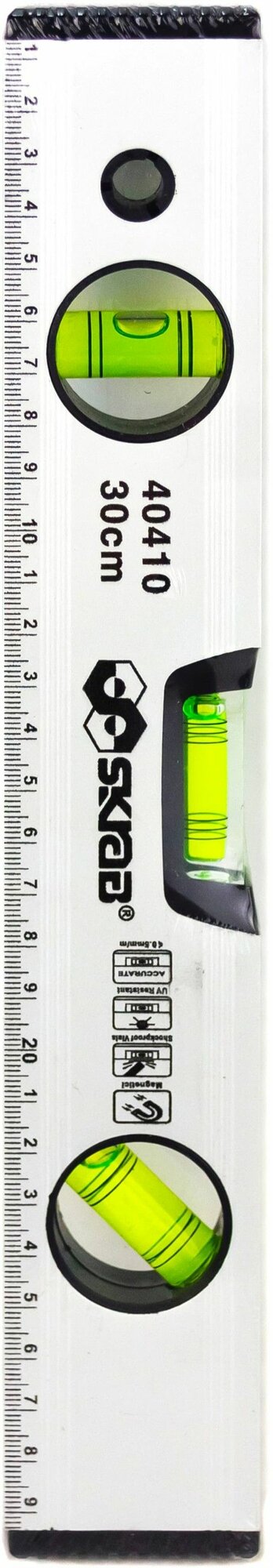 Уровень 300 мм магнитный облегченый 3 глазка алюминиевый SKRAB 40410