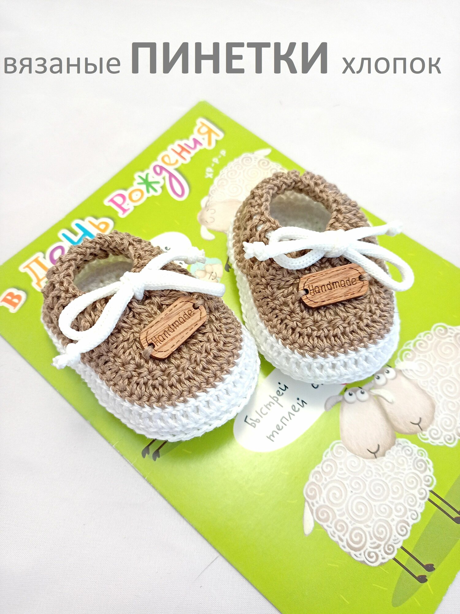 Пинетки, размер 8см (0-1мес), бежевый, белый интересное:
