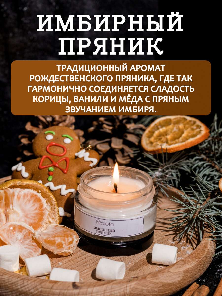 Свечи ароматические Имбирный пряник в стакане из гипса с крышкой 190мл /Соевый воск/Деревянный фитиль / Ручная работа