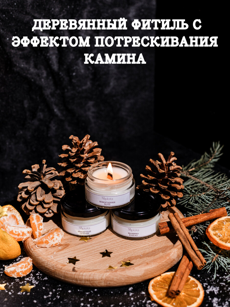 Свечи ароматические подарочный набор 3 шт 50мл с деревянным фитилем какао.имбирный прояник.новогодняя ночь