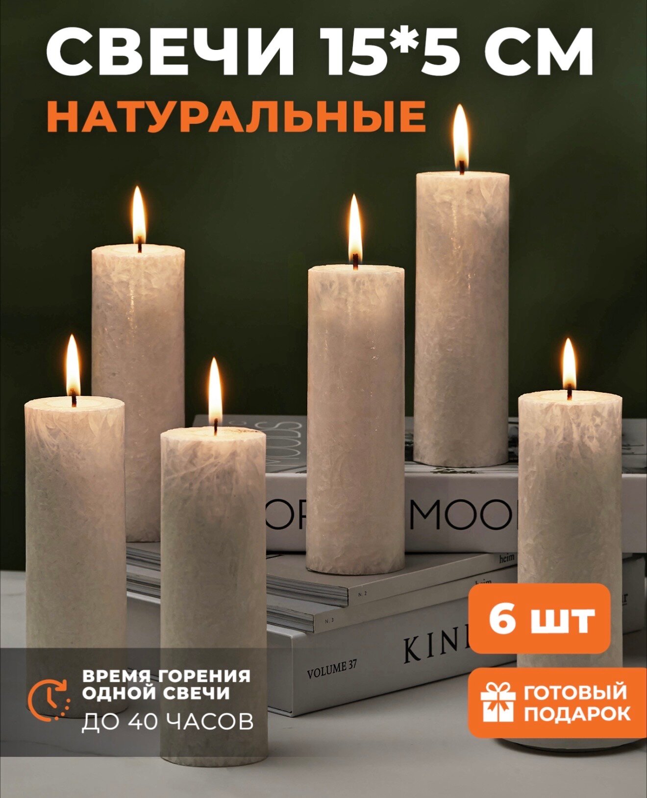 Свечи столбики большие набор 6 шт белые