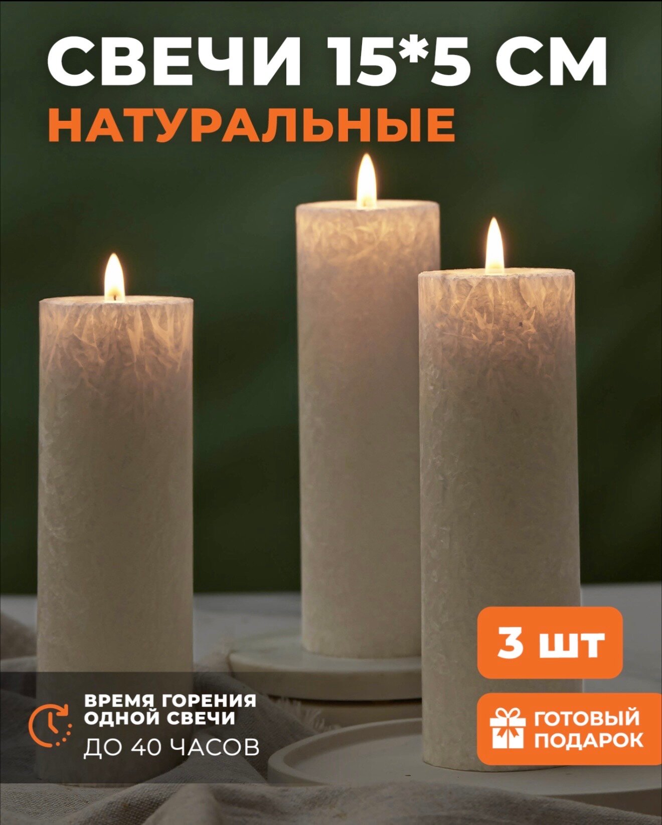 Свечи столбики большие набор 3 шт белые