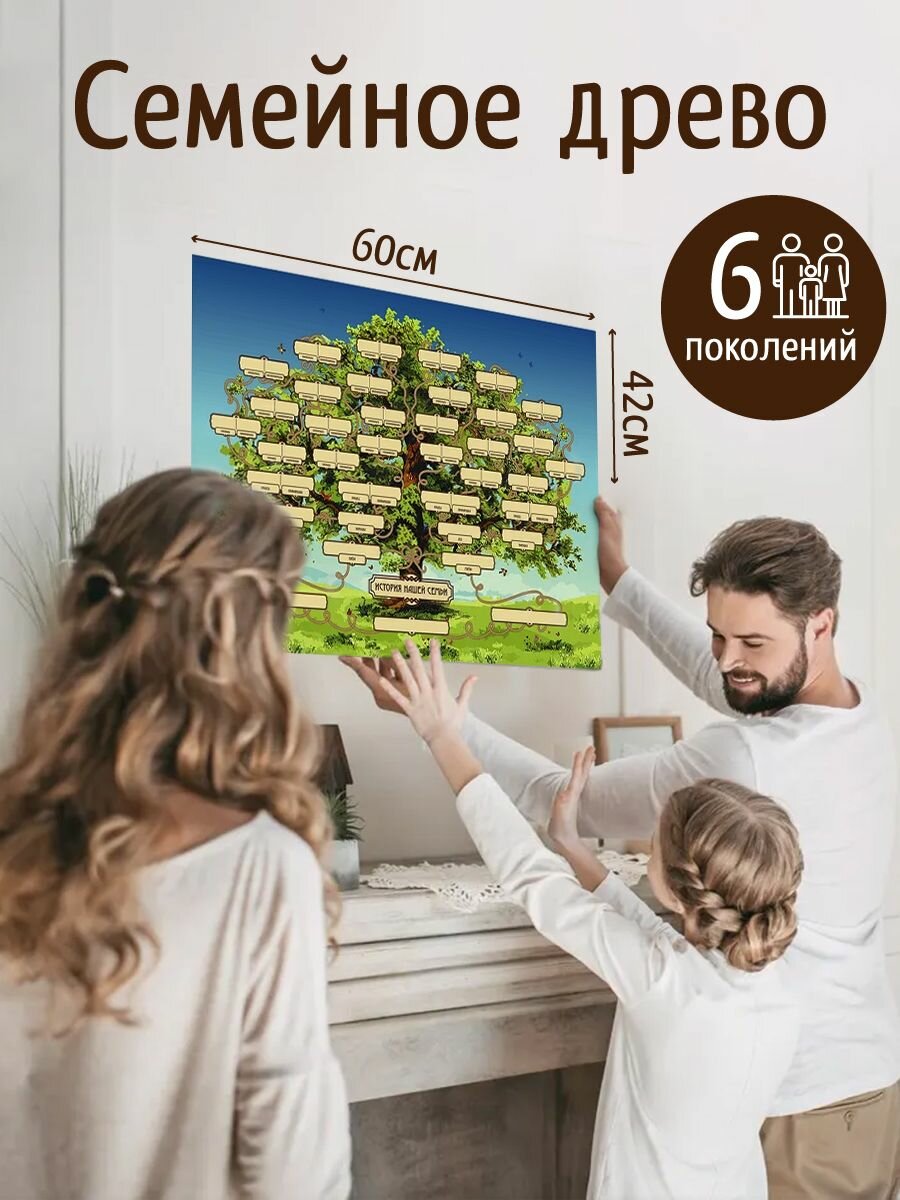 Семейное древо, постер для интерьера на стену 60*40 в подарочной упаковке интересное:
