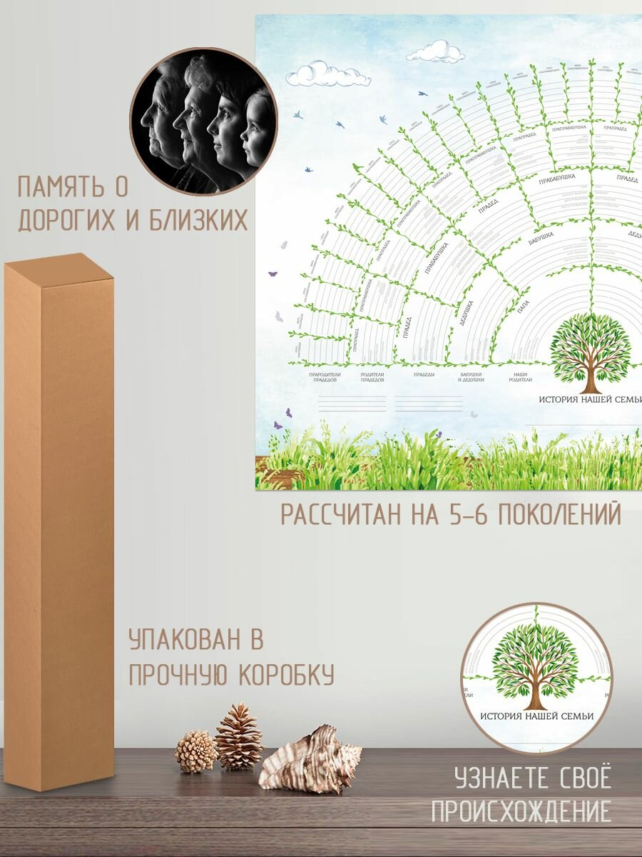 Постер генеалогическое древо семейное, родословная в подарочной упаковке интересное: