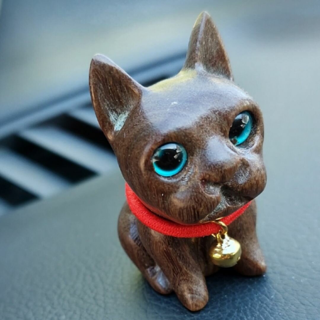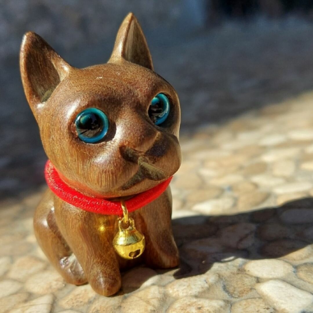 Котик с бубенчиком голубые глазки из сандалового дерева
